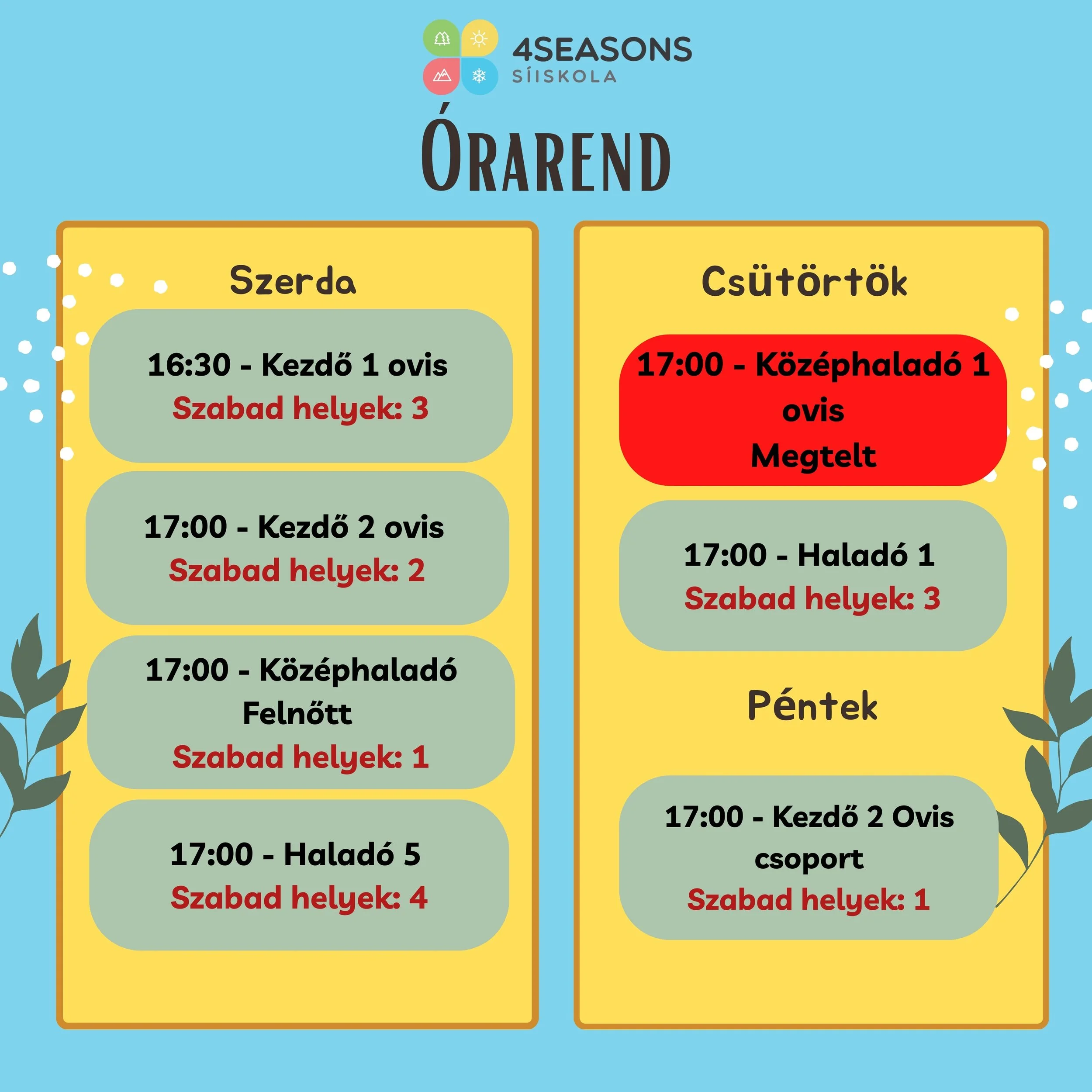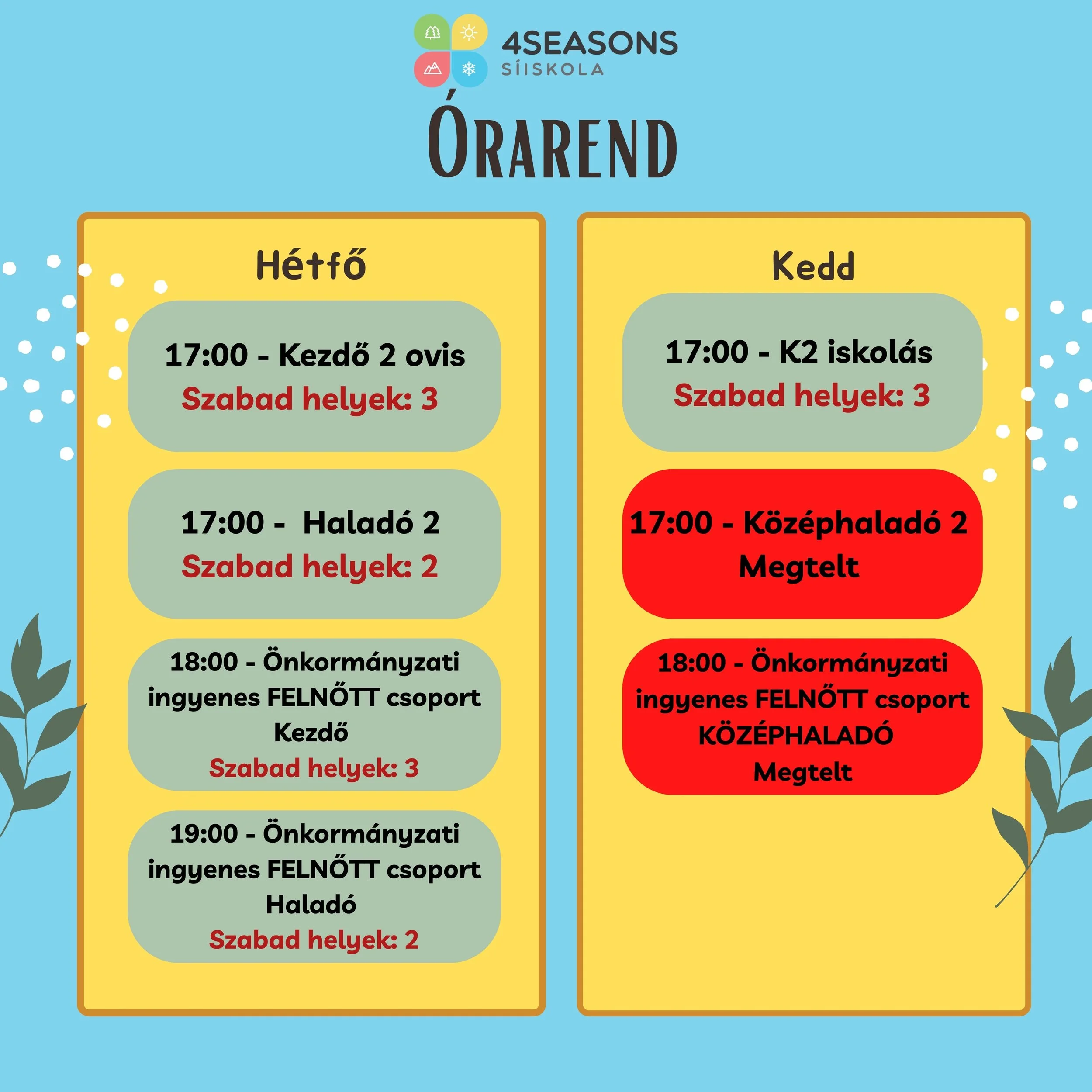A csoportbeosztás még változhat a jelentkezők számának és igényeinek függvényében.
